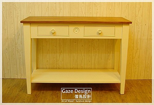 經典美式風格。雙色沙發桌/玄關桌-Sofa Table美式風格的家具其線條及造型 簡約 大器 且百年不褪流行不管日後的居家風格如何變化放置在家中 不覺突兀及不協調沒有流於花俏的彰顯有的是樸實 溫潤的質感參考尺寸:長110cm/深45cm/高80cm